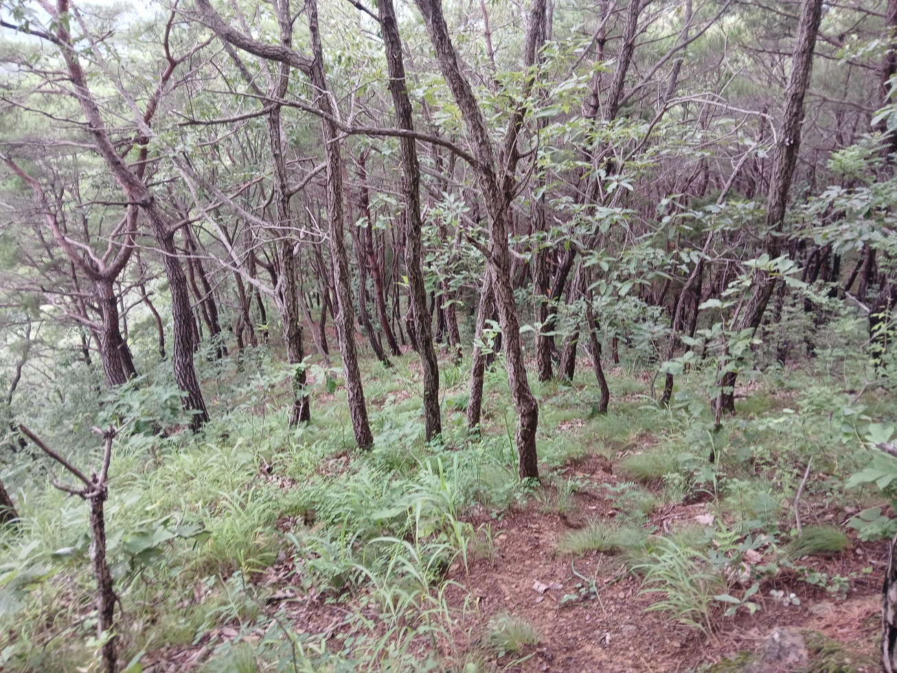 시봉산(291.4)→삼보산(180.3)→먹방산(270)→앞산(237)→태봉산(216.1) 코스로 약16.38km/ 5시간 23분으로 탐방한 적이 있다. 이번에는 시봉산만 구미마을에서 원점회귀 형태로 탐방하였는데, 2년 전 탐방하였음에도 불구하고 전혀 새로운 느낌이었다. 시봉산은 내 지도나 다음 지도엔 무명봉으로 되어 있었지만, 선답하신 뫼들선배님께서 시봉산으로 하신 걸 보면 분명 다른 지도에 그 이름이 있었을 것으로 추측해 본다. 등산로는 정상 가까이 까지는 임도 길이었고, 내려오는 길도 잡목과 잡풀이 없이 선명한 길로 되어 있었다.