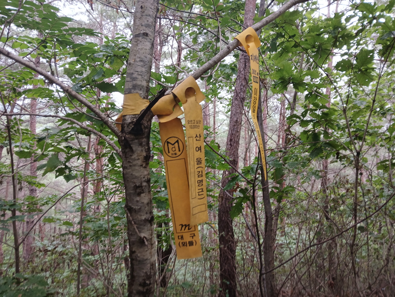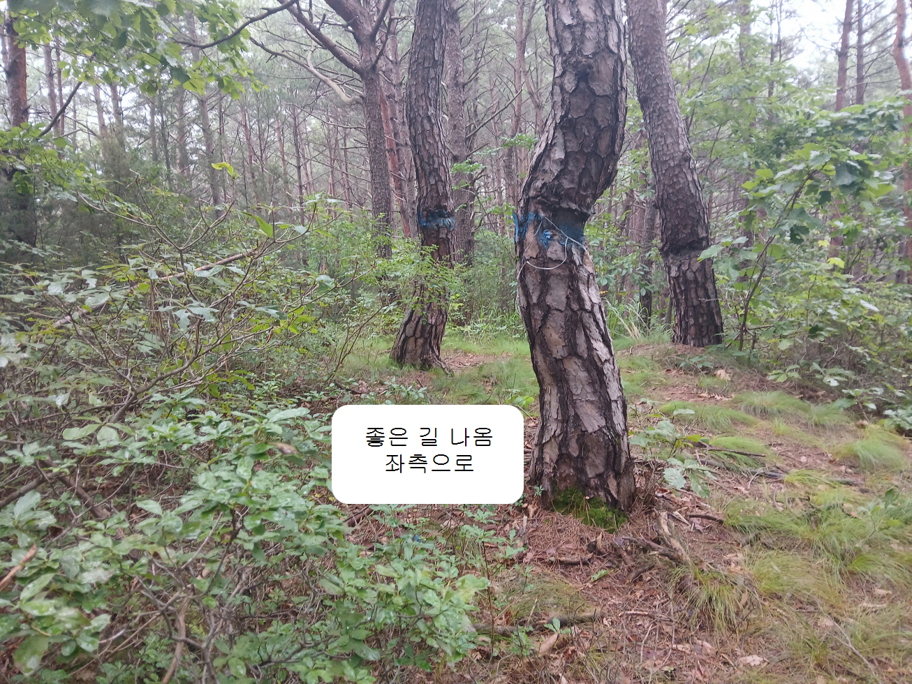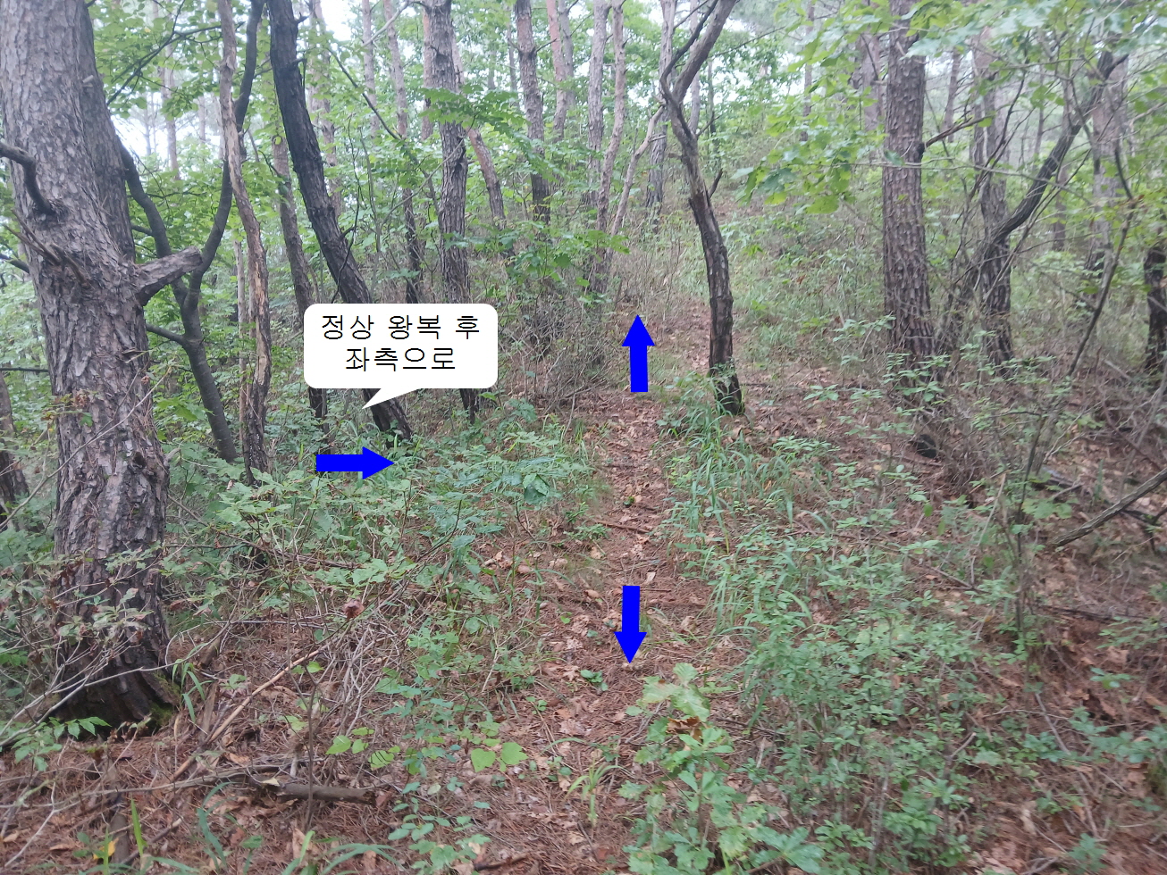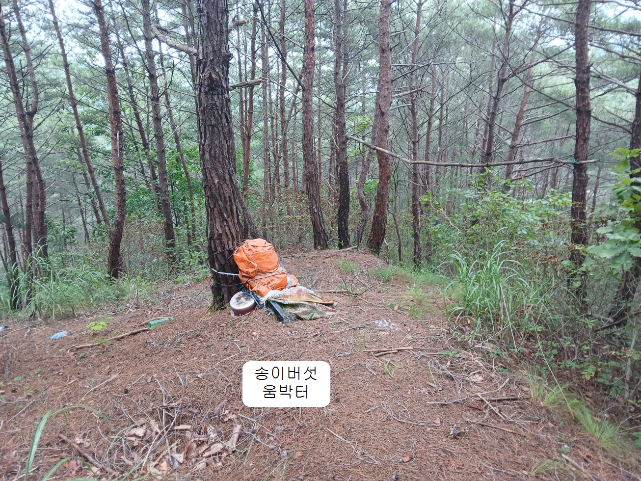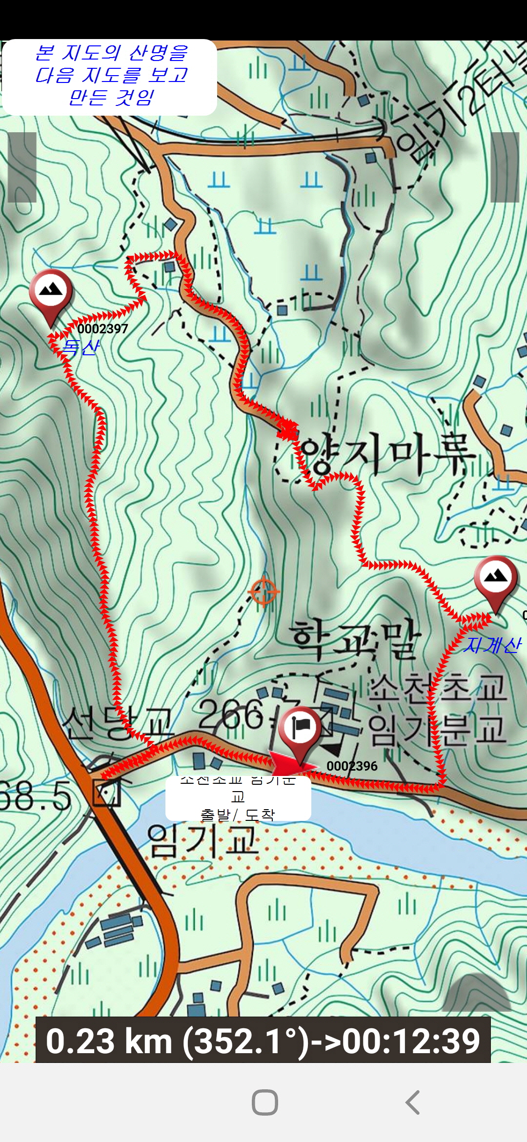 8. 산행코스: 소천초교 임기분교장(임기로 29)→선당교와 외딴 주택 중간 지점에서 능선으로 진입→독산 정상→첫 번째 김해김씨 묘→두 번째 김해김씨 묘→시멘트 도로→솔밭길 44-104농가→지게산 정상→송이버섯 움막 터→소천초교 임기분교장