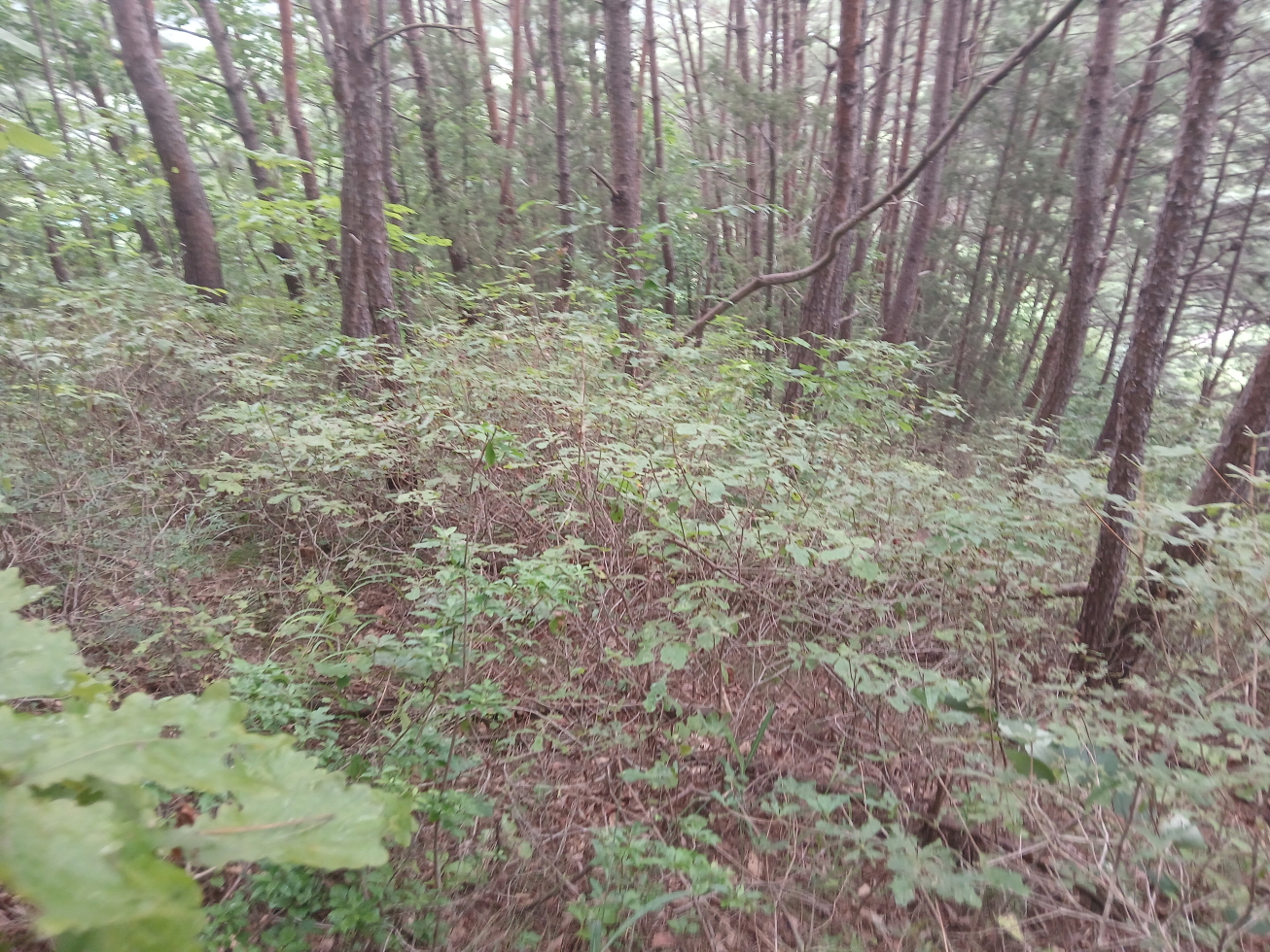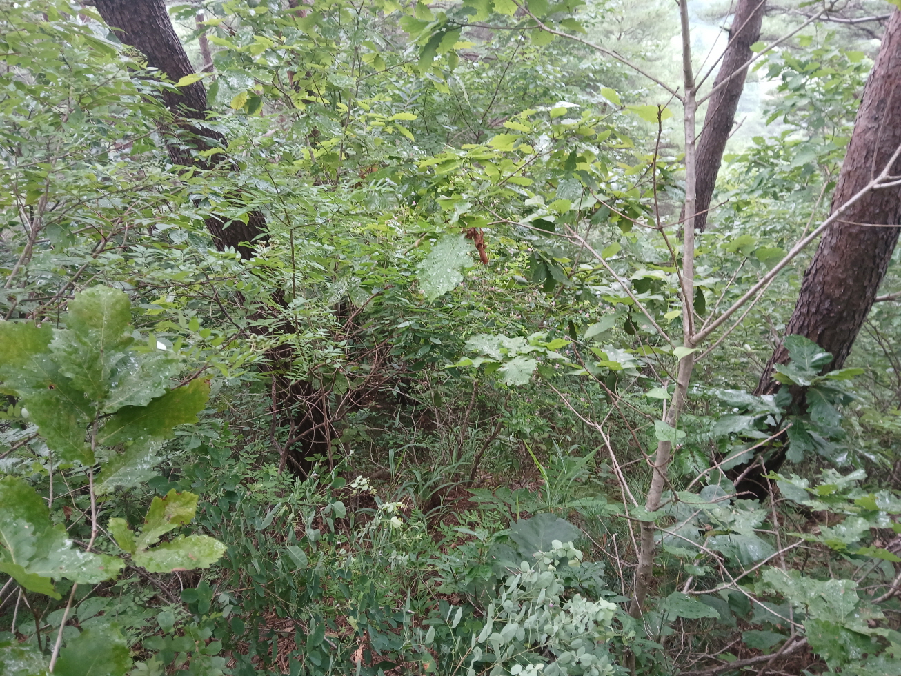 독산과 지게산은 내 지도(구, 오룩스지도)나 국립지리정보원 지도에는 표시되어 있지 않은 산이며, 다음 지도에 표시된 산이다. 이 두 산의 산행 기점으로 잡은 소천초교 임기분교장에 도착해서 주차하고 주변 지형을 잠시 둘러보았으나, 외딴 주택과 선당교 중간에서 독산 능선으로 진입하는 것이 가장 편할 것 같아 독산으로 올라 지게산을 거치는 시계방향으로 원점회귀 산행하였다. 두 산 모두 정상적인 등산로는 없었으며, 대부분 잡목과 잡초만 무성하였다.