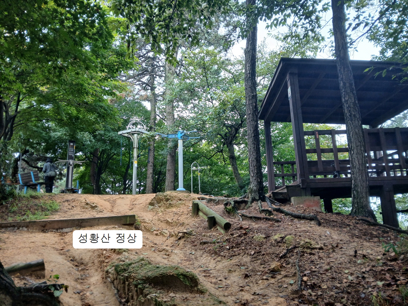 12시경에 갑자기 쏟아지는 소나기로 인하여 성황산 정상 정자에서 한참 동안 비를 피하는 상황이 되었다. 그리고 산행 전 강일 형님께서 내가 예전에 성황산 탐방을 하였다고 하셨지만,