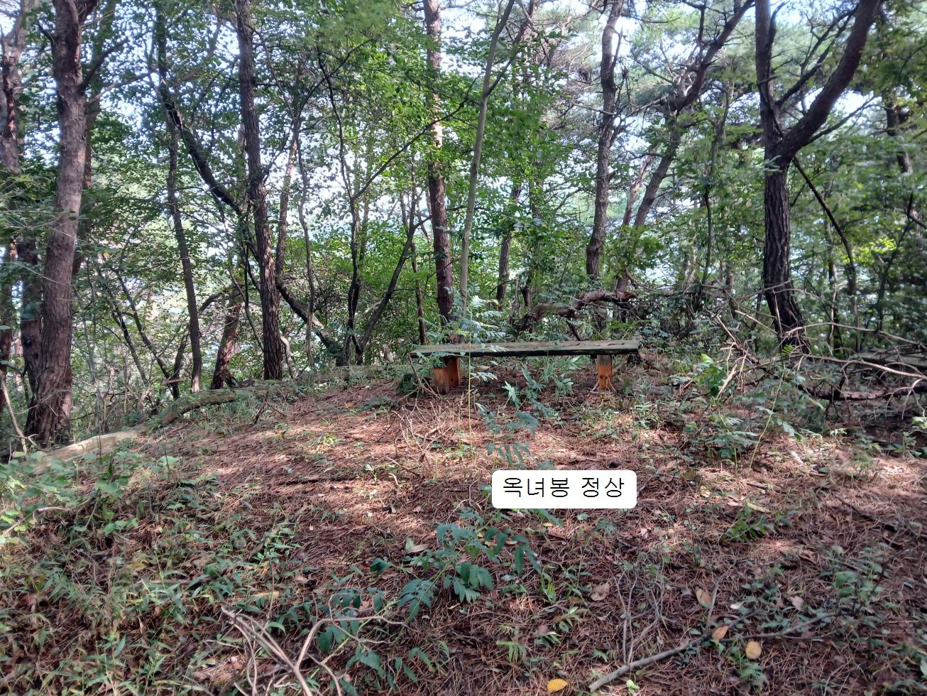 정상에 오래전 만들어 놓은 나무 의자가 몇 개 있었다. 예전에는 좋은 길이었던 것으로 보였으나 사람이 많이 다니지 않아 약간 묵어있었다.