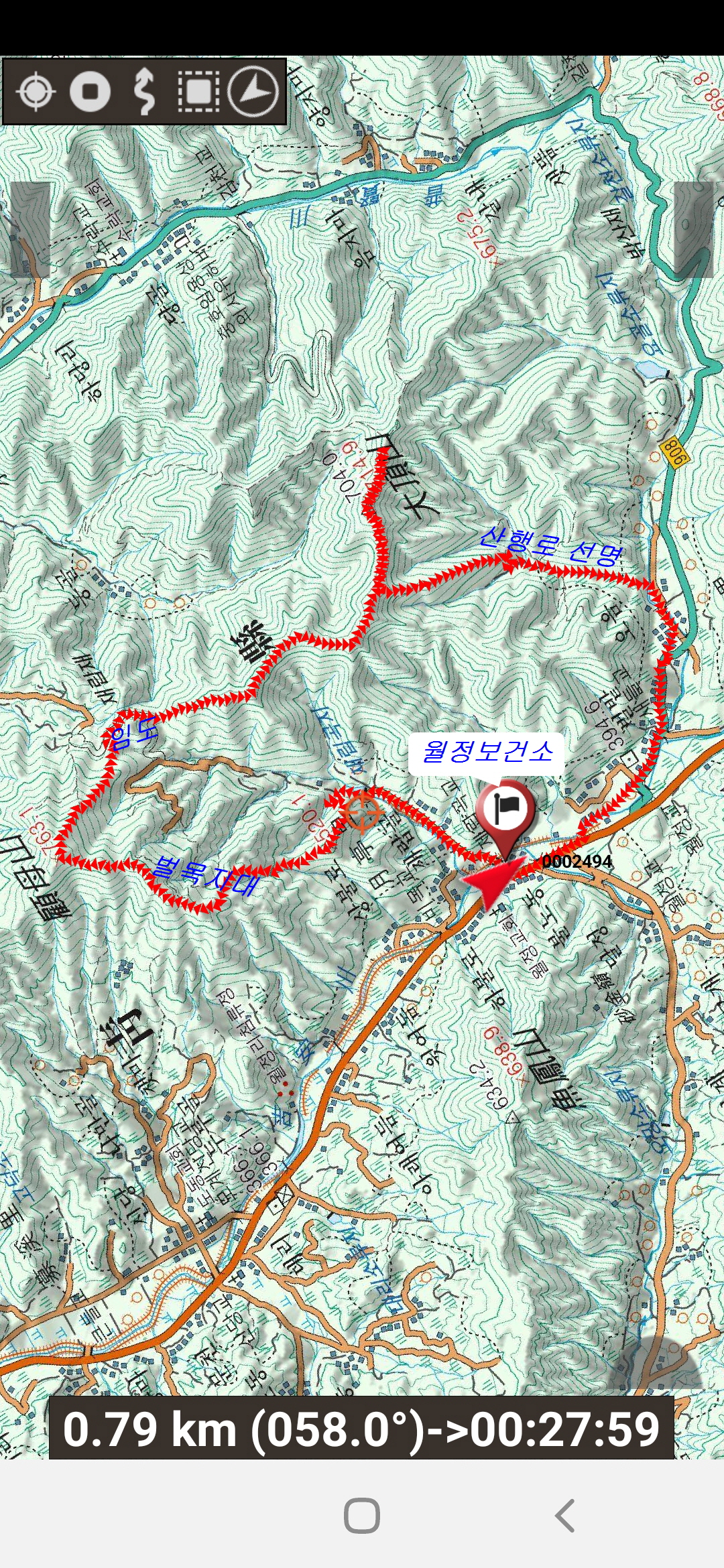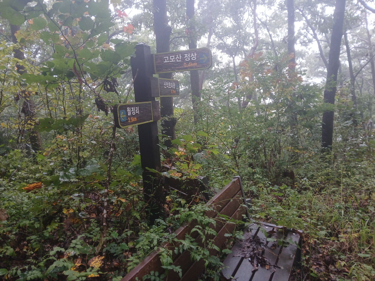 8. 산행코스: 월정 보건진료소→제랍곡교→재랍곡지→의성김씨 묘→벌목지역→경주김씨 묘→능선→이정목(벤취)→고모산 정상→임도 접속→임도 이탈→650.9m 봉→삼거리봉→삼각점→대정상 정상(왕복)→삼거리봉→하산 능선→도로접속(정씨묘)→도로→사촌 경로당→사촌벌말 경로당→월정 보건진료소
