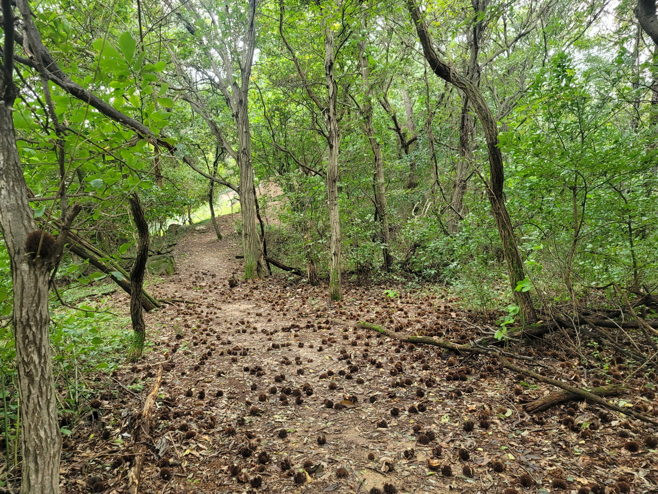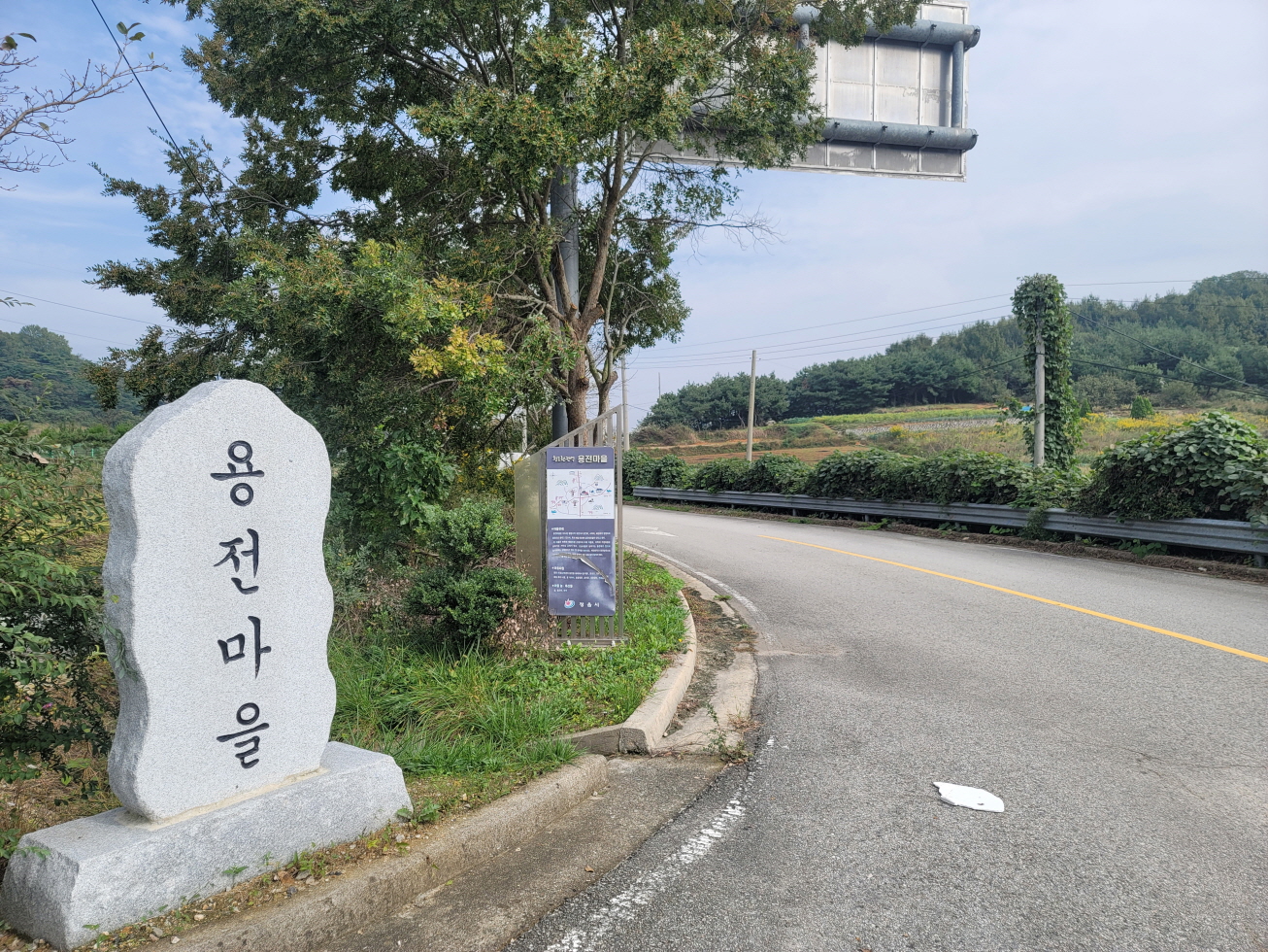 내 지도에 표시되어 있었고, 현지 마을회관앞 비석에 매봉으로 표시되어 있었다. 등산로는 용전사거리 4차선 도로를 건너 도로 옆으로 보이는 임도(묘지)로 가는 길로 오르면 묘지까지는 좋은 길로 연결되었고 묘지 이후 희미한 길을 따라 매봉 정상을 밟은 후 계속되는 희미한 등로를 따라 잡풀 사이로 용전 버스정류장 방향으로 하산하였다.