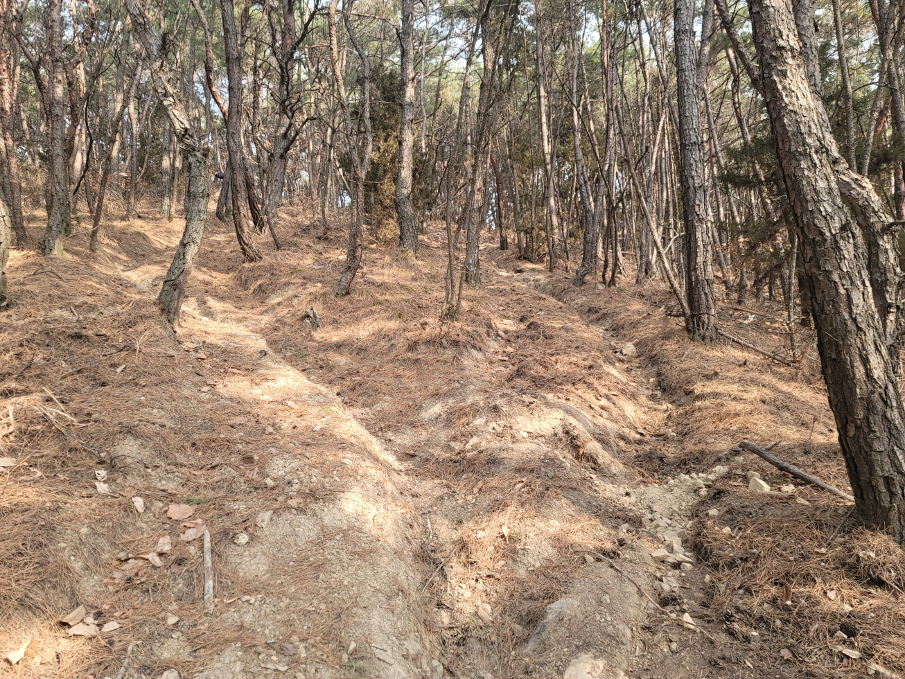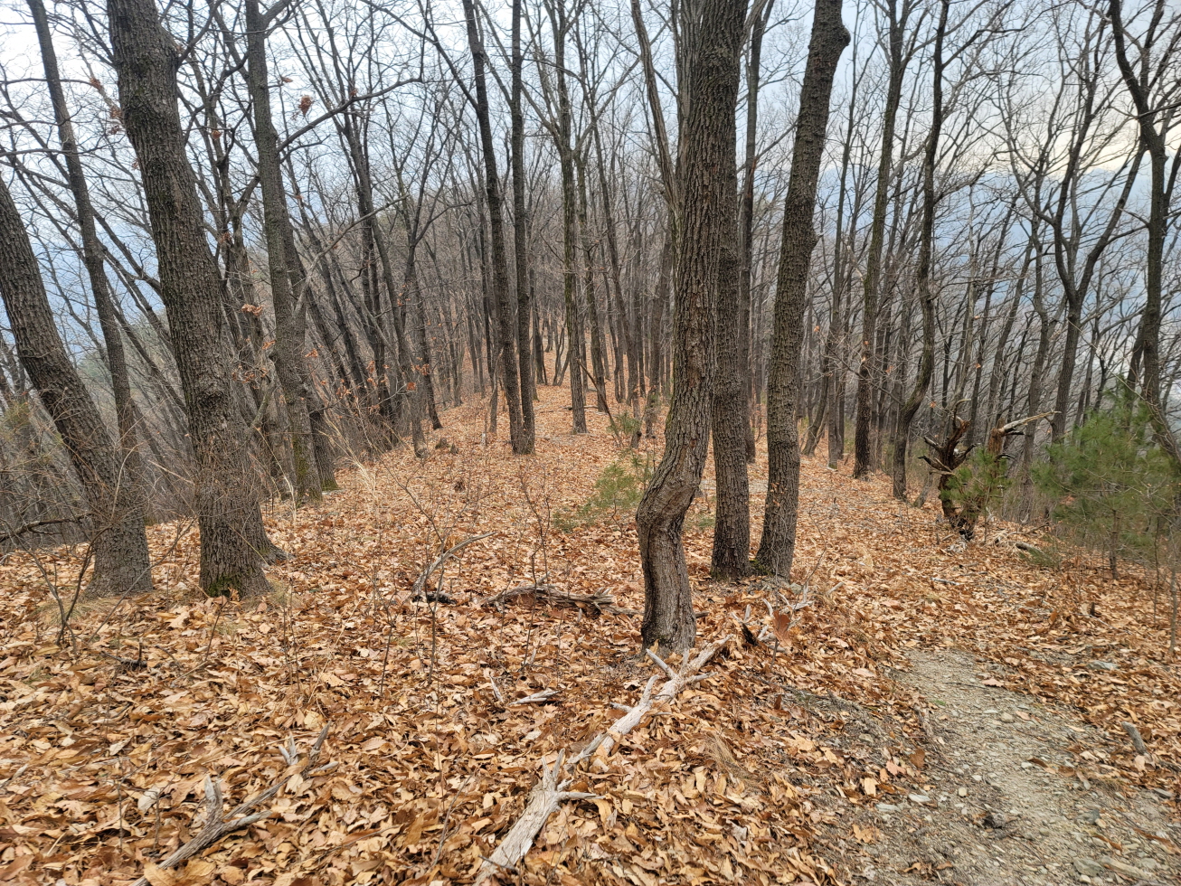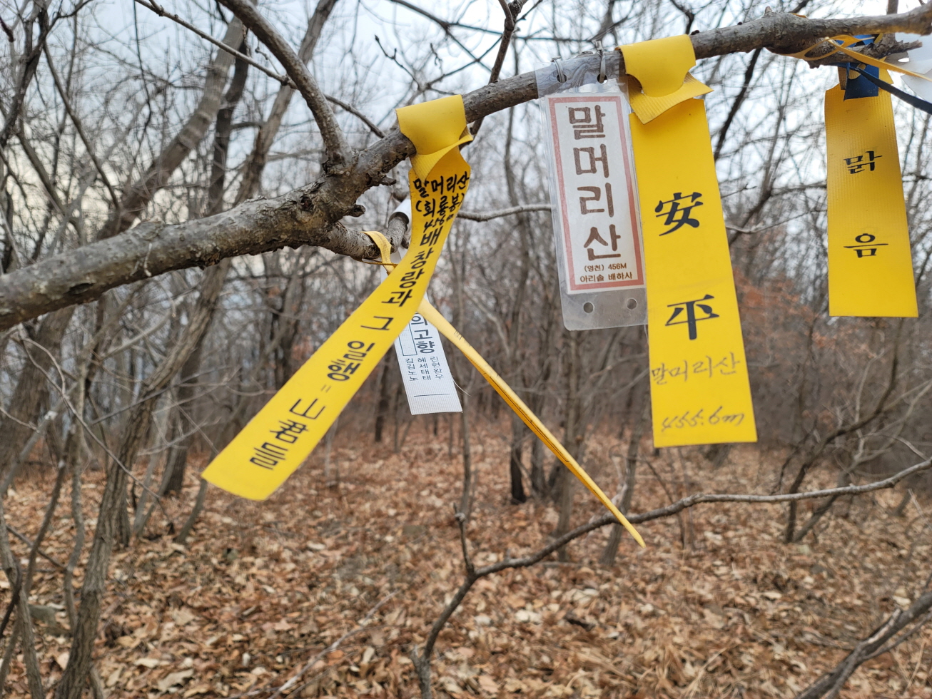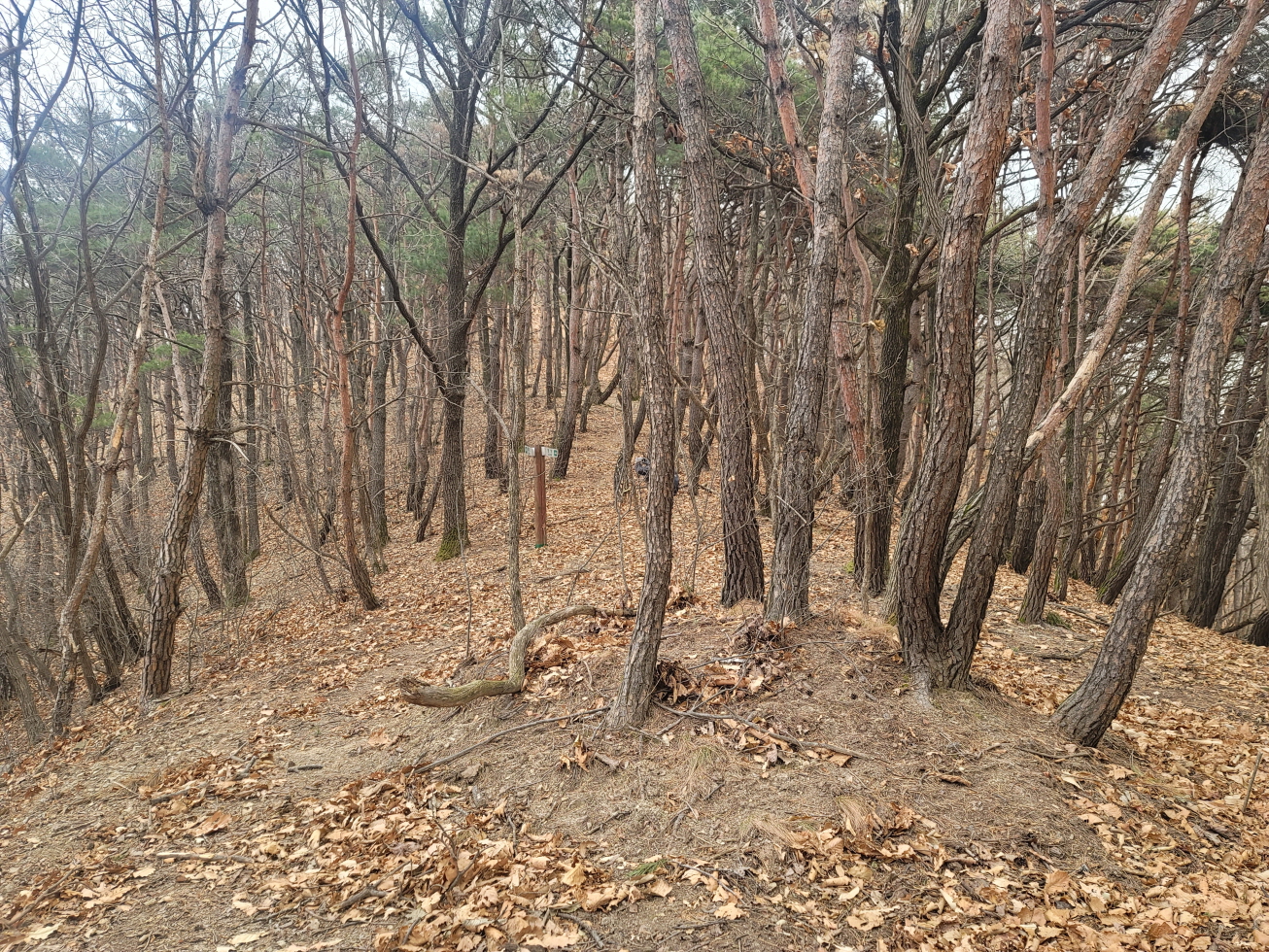 오늘은 경북 영천의 미답지인 자라등→말머리산→징경산→봉암산 탐방하기로 하며 금대리(새터) 마을앞 공터에 주차를 해놓고 산행을 시작하였다. 이번 주 처음 계획은 전남 광주로 계획하였으나, 많은 눈과 비 예보로 인하여 산행지를 바꾸었다. 이곳도 토요일은 노고산과 위지지를 탐방하기로 하였으나, 일기예보에 맑다고 해서 현지에 도착하였으나, 많은 비가 내려 또다시 산행지를 이곳으로 옮겼다. 오늘 탐방하는 산행지의 산과 봉명 모두가 내 지도(구/ 오룩스)나 다음 지도엔 무명봉이었다. 그러나 어느 지도에 표시되어 있는지는 모르겠으나, 정상에 많은 선답자분들의 표시기가 걸려 있는 것으로 보아, 분명 어느 지도인가 표시되어 있지 않나 추측해 본다. 등산로 상태는 안내도나 특이 사항은 없었지만, 대부분 완만하고 선명하였다. 중간 말머리 산 가는 길에 낡은 이정목이 두 개 세워져 있었으나, 정상 표시는 없었다.영천 자라등, 말머리산, 징경산, 봉암산