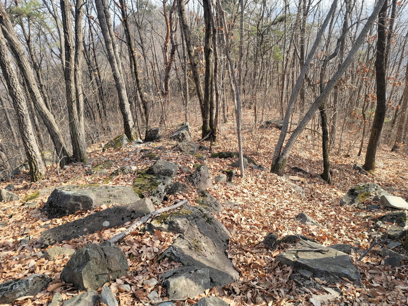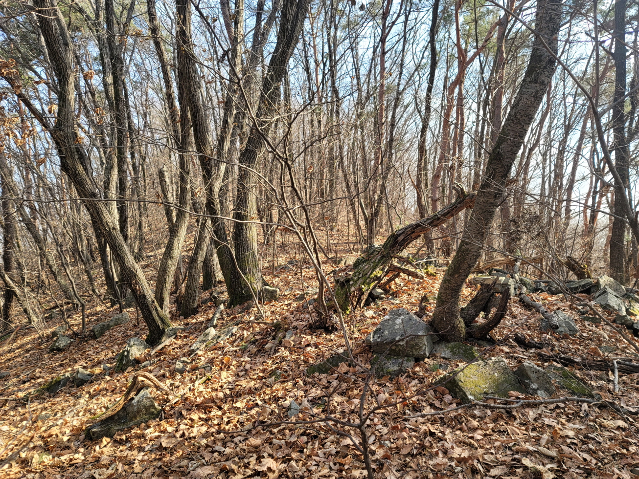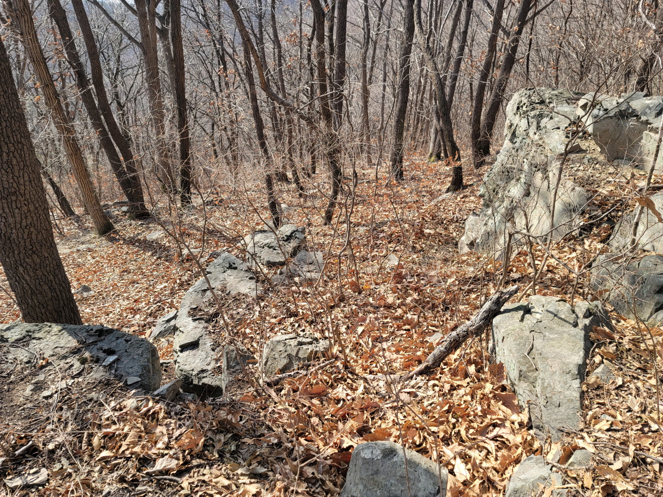 오늘은 경북 영천의 미답지인 자라등→말머리산→징경산→봉암산 탐방하기로 하며 금대리(새터) 마을앞 공터에 주차를 해놓고 산행을 시작하였다. 이번 주 처음 계획은 전남 광주로 계획하였으나, 많은 눈과 비 예보로 인하여 산행지를 바꾸었다. 이곳도 토요일은 노고산과 위지지를 탐방하기로 하였으나, 일기예보에 맑다고 해서 현지에 도착하였으나, 많은 비가 내려 또다시 산행지를 이곳으로 옮겼다. 오늘 탐방하는 산행지의 산과 봉명 모두가 내 지도(구/ 오룩스)나 다음 지도엔 무명봉이었다. 그러나 어느 지도에 표시되어 있는지는 모르겠으나, 정상에 많은 선답자분들의 표시기가 걸려 있는 것으로 보아, 분명 어느 지도인가 표시되어 있지 않나 추측해 본다. 등산로 상태는 안내도나 특이 사항은 없었지만, 대부분 완만하고 선명하였다. 중간 말머리 산 가는 길에 낡은 이정목이 두 개 세워져 있었으나, 정상 표시는 없었다.영천 자라등, 말머리산, 징경산, 봉암산