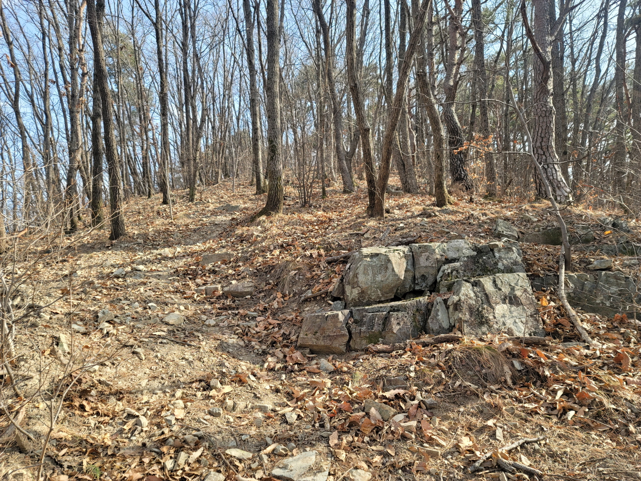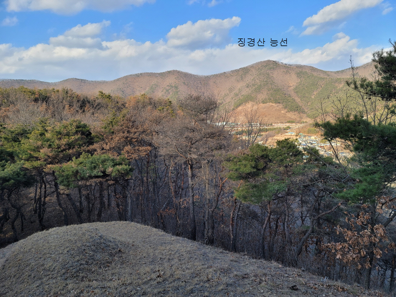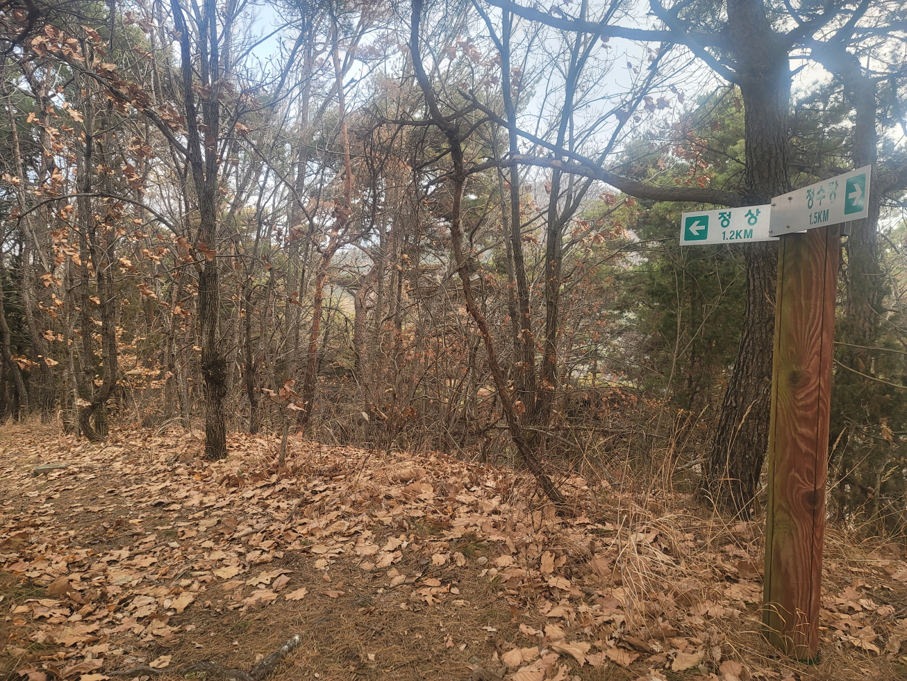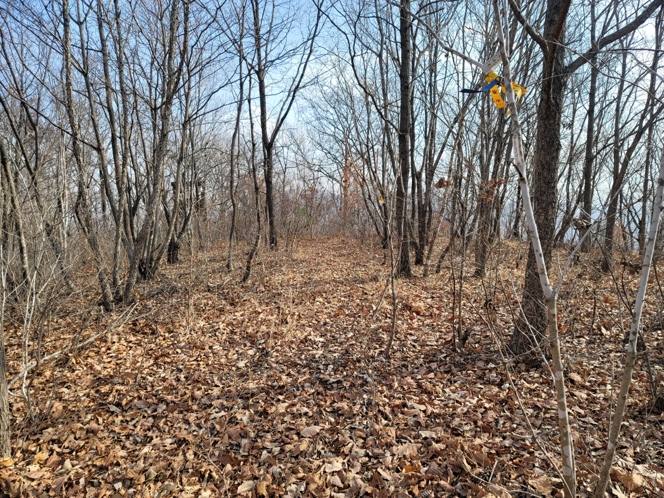 오늘은 경북 영천의 미답지인 자라등→말머리산→징경산→봉암산 탐방하기로 하며 금대리(새터) 마을앞 공터에 주차를 해놓고 산행을 시작하였다. 이번 주 처음 계획은 전남 광주로 계획하였으나, 많은 눈과 비 예보로 인하여 산행지를 바꾸었다. 이곳도 토요일은 노고산과 위지지를 탐방하기로 하였으나, 일기예보에 맑다고 해서 현지에 도착하였으나, 많은 비가 내려 또다시 산행지를 이곳으로 옮겼다. 오늘 탐방하는 산행지의 산과 봉명 모두가 내 지도(구/ 오룩스)나 다음 지도엔 무명봉이었다. 그러나 어느 지도에 표시되어 있는지는 모르겠으나, 정상에 많은 선답자분들의 표시기가 걸려 있는 것으로 보아, 분명 어느 지도인가 표시되어 있지 않나 추측해 본다. 등산로 상태는 안내도나 특이 사항은 없었지만, 대부분 완만하고 선명하였다. 중간 말머리 산 가는 길에 낡은 이정목이 두 개 세워져 있었으나, 정상 표시는 없었다.영천 자라등, 말머리산, 징경산, 봉암산