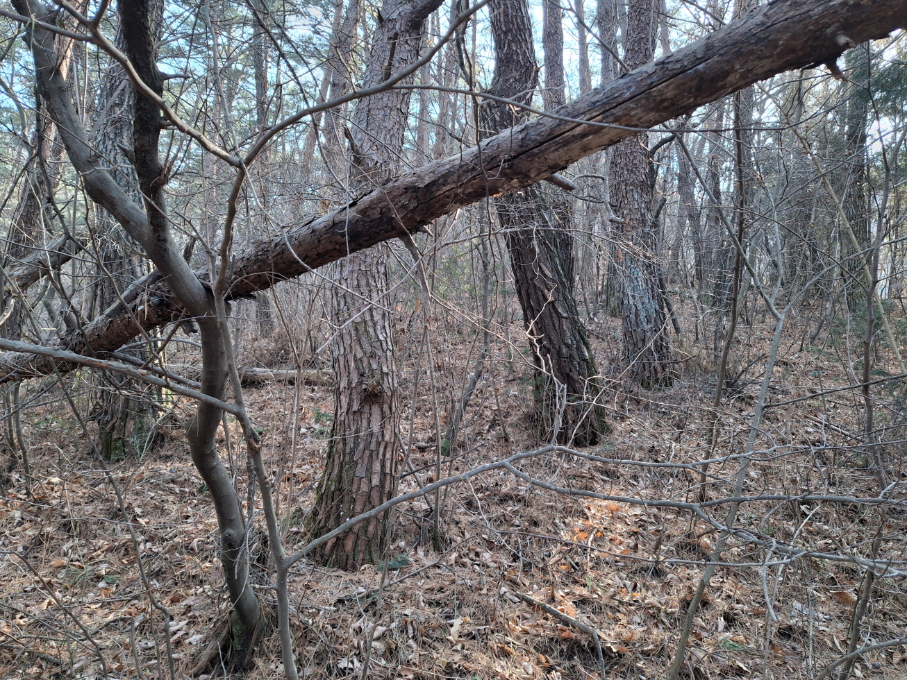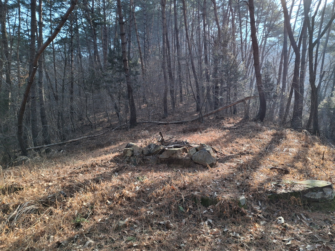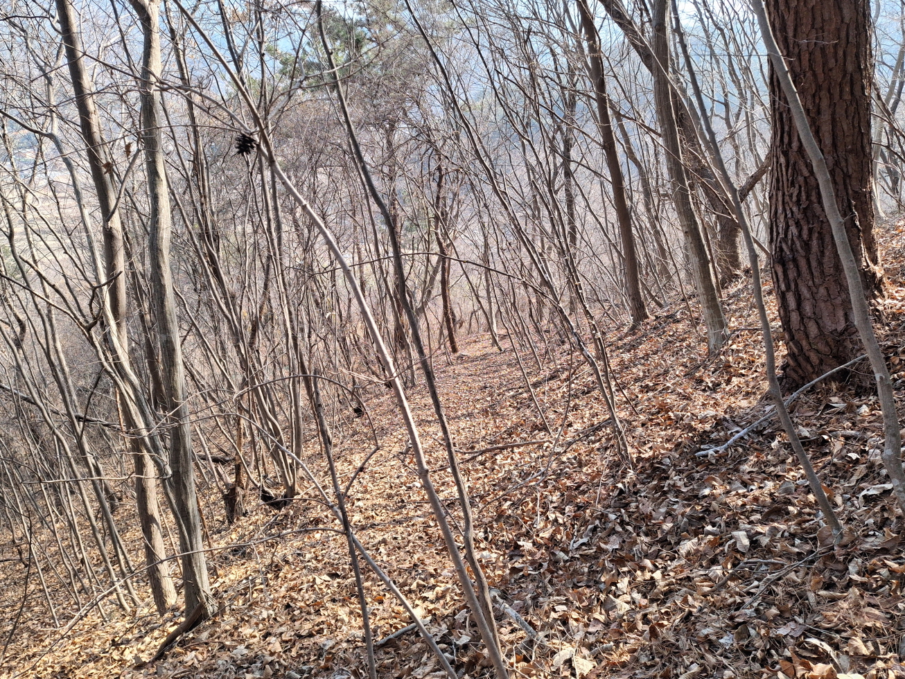 내 지도에 표시되어 있었으며, 등산로 상태는 진주강씨 묘까지는 묘지 길을 이용하였으며, 묘지 이후 봉두산 정상 넘어 외딴집까지는 가시잡목 구간이었다.