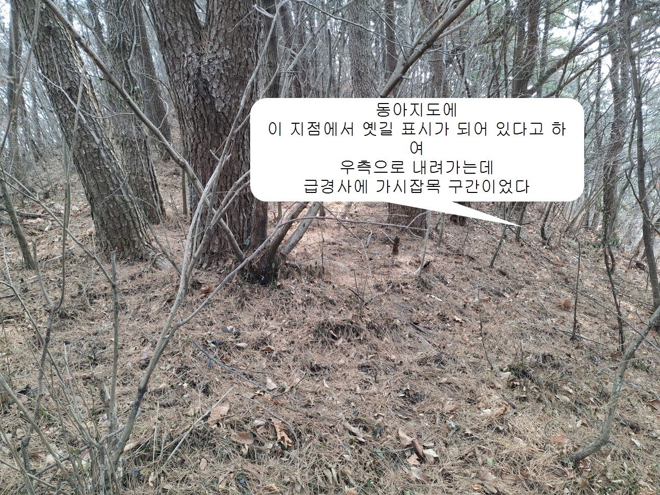 오늘은 산들이 띄엄띄엄 떨어져 있기에 차량을 이용하여 이동해가며 세 번에 나누어 산행을 하였다. 먼저 호암산을 탐방하였는데, 우리는 시락마을회관에 주차 후 산행을 시작하였다. 산불감시초소 아저씨 말에 의하면 우리가 올라간 길은 오래 전 등산로가 있었으나, 사람들이 이용하지 않아 묵어 있다고 하였다. 울빛재에서 산불 감시초소아저씨가 오르내리는 좋은 길이 있었다. 호암산 정상은 동아지도와 오룩스 지도가 서로 다른 지점을 표시하고 있었기에 우리는 동아지도에 표시되어 있는 308.7봉을 왕복하였다. 그 후 능선을 따라 내려가다가 동아지도에 내려가는 길 표시가 되어 있다고 하여 내려갔으나, 급경사 가시잡목 구간이었다.