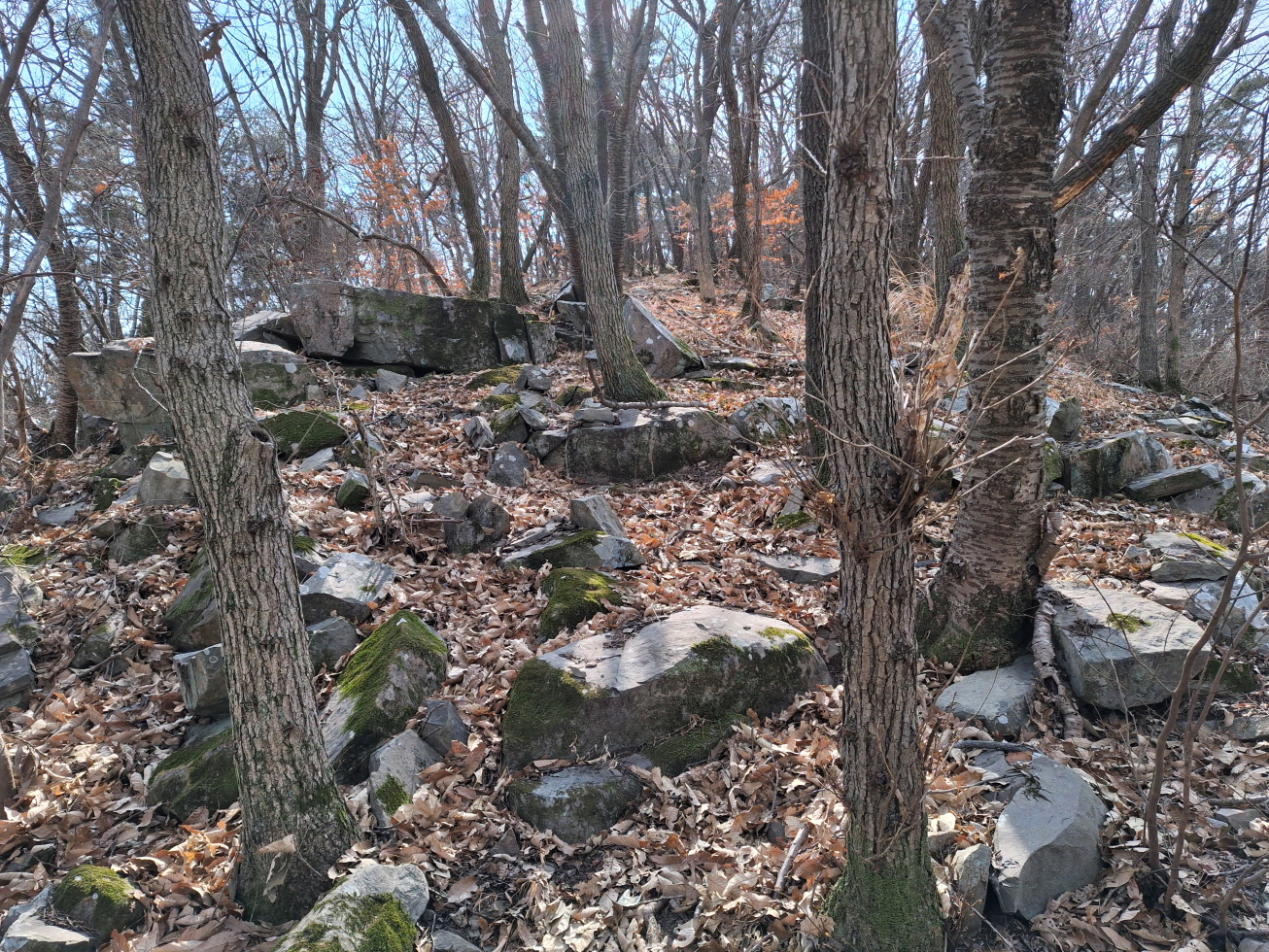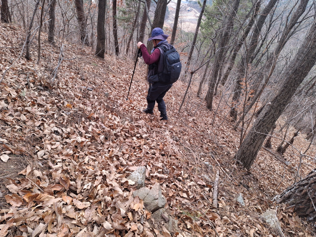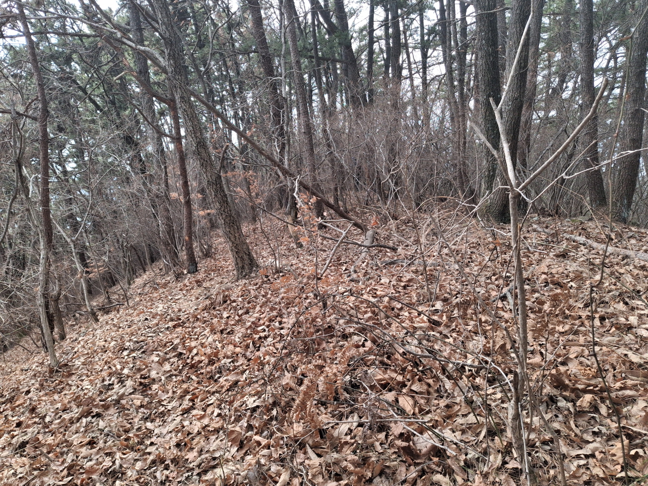 오늘 두 번째 산행지인 장군산과 노인산은 내 지도에 표시되어 있었으며, 등산로 상태는 장군산은 오르내림 길은 모두 좋은 편이었고, 노인산은 도로 고개를 지나 오르는 길은 처음에는 벌목지대였고, 벌목지대를 지나면 노인산 정상까지 괜찮은 등산로가 이어지는데, 정상을 지나 내려가는 길은 길의 흔적이 보이지 않았으며, 경사가 심하며 많이 위험하였다.