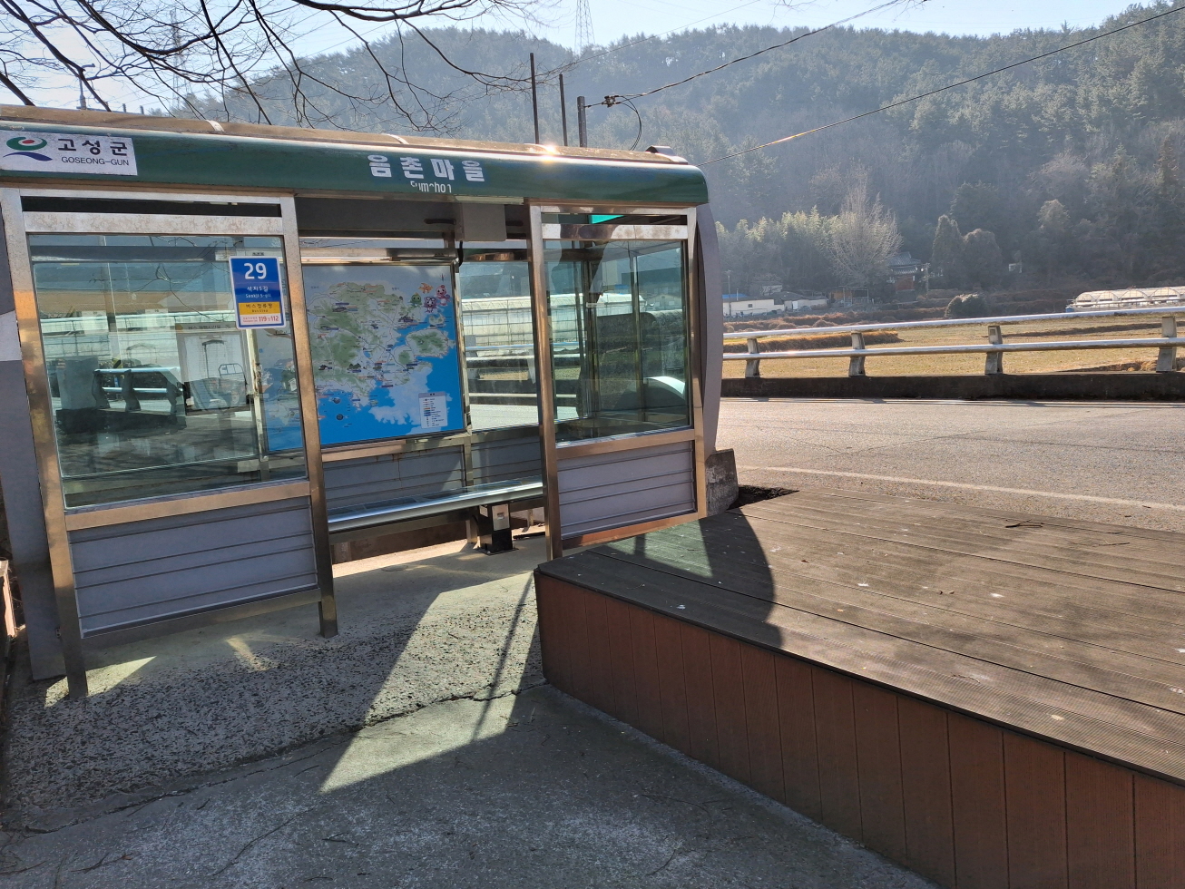 7. 들머리/ 날머리: 석지리(음촌마을)앞 공터/ 신촌마을표지석