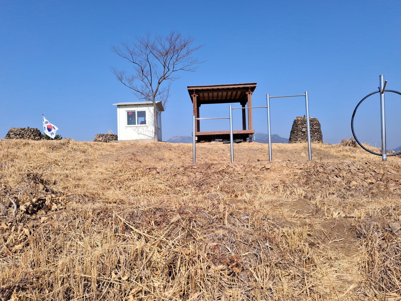 내 지도엔 무명봉, 다음지도와 현지에는 사당산이라 되어 있었으며, 하이면사무소앞에 등산안내도와 이정목...등등이 잘 정비되어 있어, 많은 하이면민들이 운동 삼아 수시로 오르내리는 산이었다. 정상에는 감불감시초소와 주변 와룡산, 각산...등등이 시원하게 조망된다.